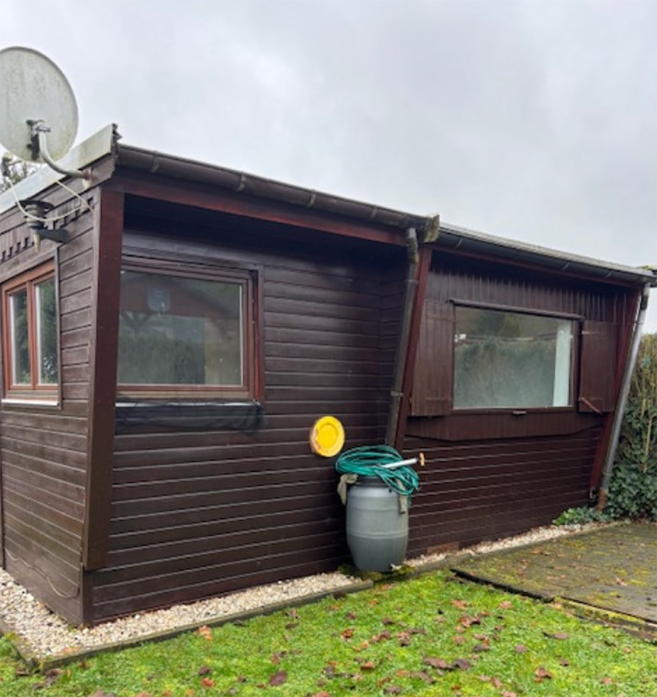 Diese 2 Mobilheime werden nur zusammen verkauft, da diese durch einen schönen Innenhof miteinander verbunden sind, der von beiden Mobilheimen zugänglich ist. Daher bieten sich diese Mobilheime besonders für Familien mit Kindern oder Hunden an. Im größeren der beiden Häuschen befinden sich ein Schlafzimmer, eine Küche mit Essecke, ein Wohnzimmer, ein kleiner Eingangsbereich, ein separates Esszimmer, ein Badezimmer mit Dusche und ein kleiner Balkon mit Blick ins Grüne Richtung Freilingen. Ebenfalls gehört zu diesem Häuschen noch ein Schuppen für Werkzeug etc., das vom Innenhof aus zugänglich ist. Das kleinere Mobilheim besteht aus einem gemütlichen Wohnzimmer mit Essecke, einem Klo und 3 weiteren separaten Zimmern. Es gibt aber keine Dusche und keine Küchenzeile, auch deshalb werden diese Mobilheime nur zusammen verkauft. Zu diesem Mobilheim gehört noch ein kleiner Außenbereich mit Blumenbeet, Fahrradschuppen und Parkmöglichkeit für 2 Fahrzeuge.